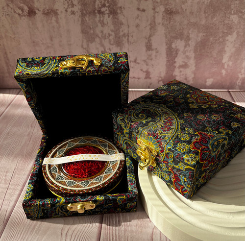زعفران 2 گرمی سوپر نگین جعبه هدیه ترمه